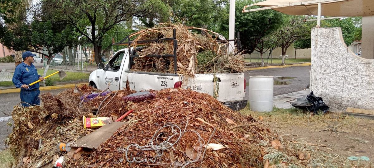 Gómez Palacio, Durango.- Con el propósito de ofrecer a la ciudadanía espacios dignos para la convivencia y el disfrute familiar, el Ayuntamiento de Gómez Palacio, a través de la Dirección de Servicios Públicos, realizó labores de limpieza, desmalezado y barrido en la plaza pública y el camellón de la colonia Veredas de Santa Rita, promoviendo así un entorno más limpio, seguro y saludable.