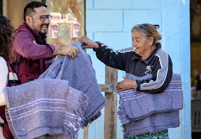 Desde las primeras horas del domingo, 150 funcionarios y empleados municipales, distribuidos en 23 vehículos, recorrieron de manera simultánea colonias y comunidades rurales para entregar cobertores a cerca de 5 mil hogares, llevando apoyo directo a quienes más lo necesitan frente a las bajas temperaturas.