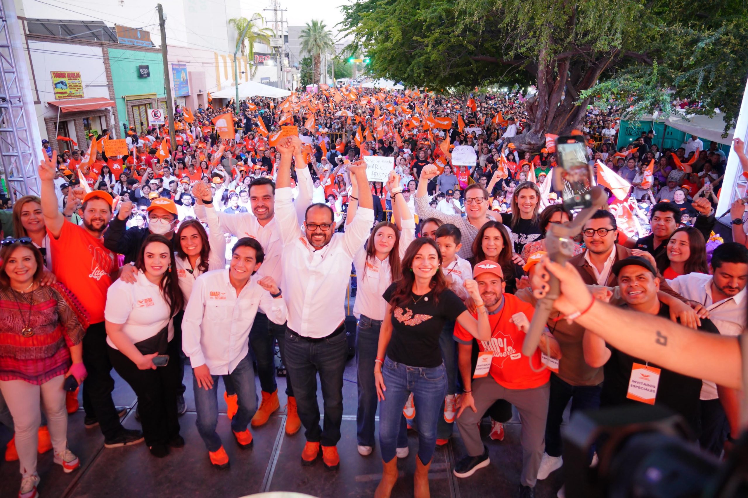 Gómez Palacio, Durango.- Ante más de 10 mil personas en la Plaza de Armas, Gómez Palacio vivió la alegría por estar a punto de ser rescatada por el ejército naranja comandado por Omar Castañeda y su planilla de Movimiento Ciudadano. Con el apoyo de las y los laguneros, esta ciudad está a punto de sacar los malos gobiernos de siempre. La presencia del líder nacional de MC, Jorge Álvarez Máynez, deja en claro la prioridad nacional por este anhelado triunfo que traerá un mejor Gómez Palacio para todas y todos los gomezpalatinos.