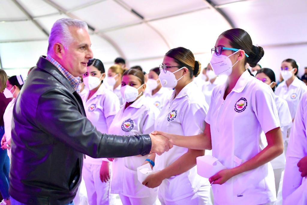 Redacción|LaOtraPlana.com.mx Torreón, Coahuila.- El alcalde de Torreón, Román Alberto Cepeda González, presidió la ceremonia de imposición de cofias, filipinas e insignias a 127 estudiantes de