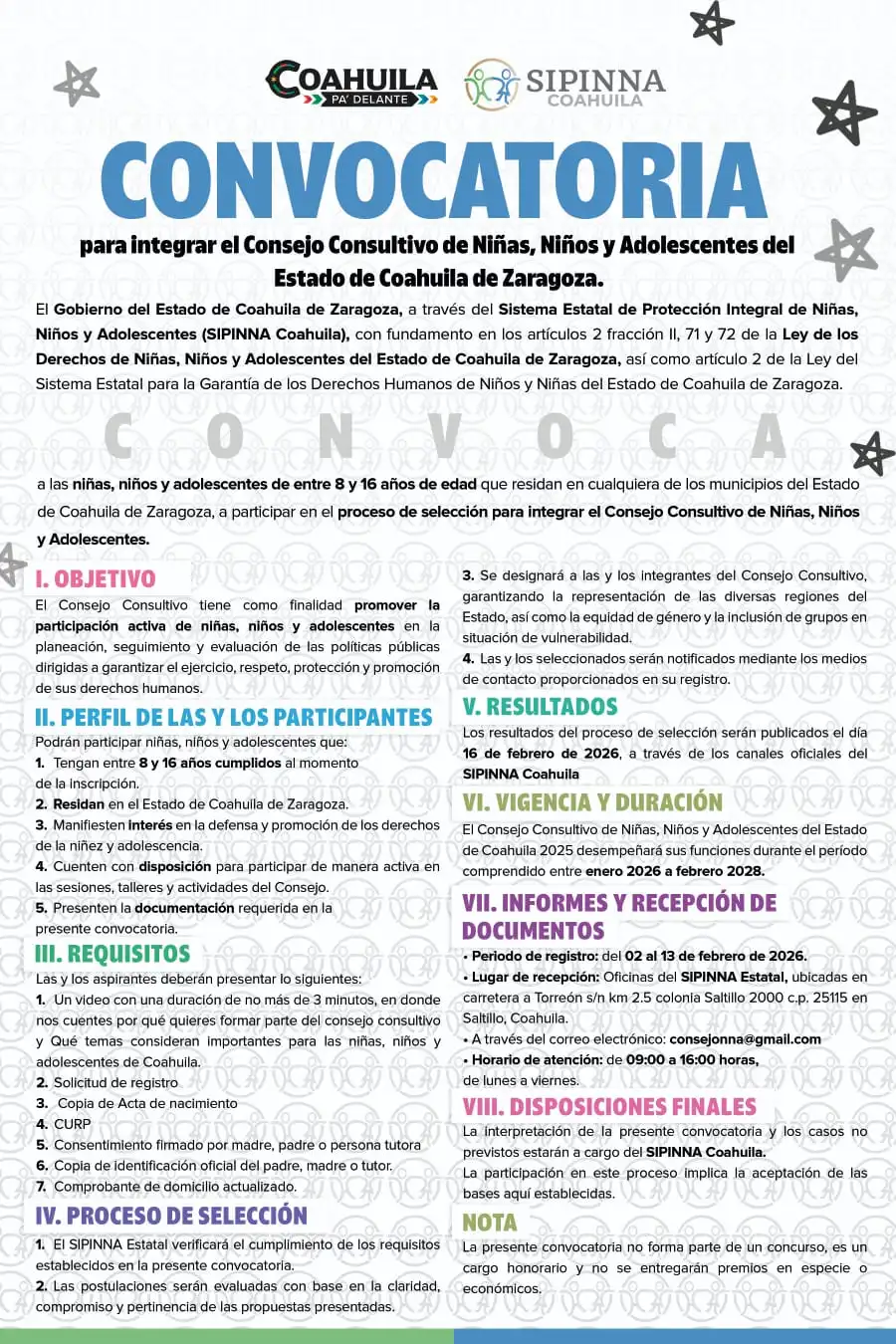 Convocan a integrar el Consejo Consultivo de Niñas, Niños y Adolescentes de Coahuila