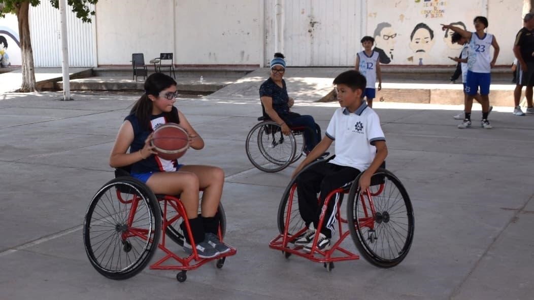 Torreón, Coahuila.- Con el objetivo de fomentar la inclusión, la empatía y la conciencia social en la juventud, el Sistema para el Desarrollo Integral de la Familia (DIF) Torreón, a través del Centro Integral de Discapacidad Abriendo Caminos, organizó un partido de basquetbol en silla de ruedas, donde participaron alumnos de la Secundaria No. 13 Emiliano Zapata del ejido La Concha y del Instituto Francés de La Laguna.